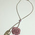 Fio em correntes com metais, peças de vidro, pérolas e peças roxas sintéticas